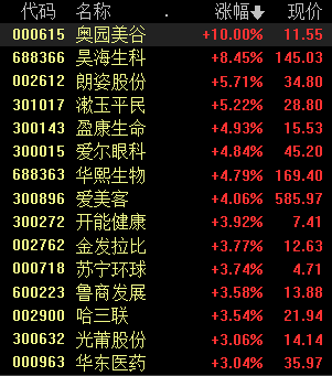 12月9日,医美概念盘中异动拉升,截至发稿,奥园美谷涨停,昊海生科涨逾8%,朗姿股份(002612,股吧)、漱玉平民、盈康生命(300143,股吧)等股纷纷跟涨。