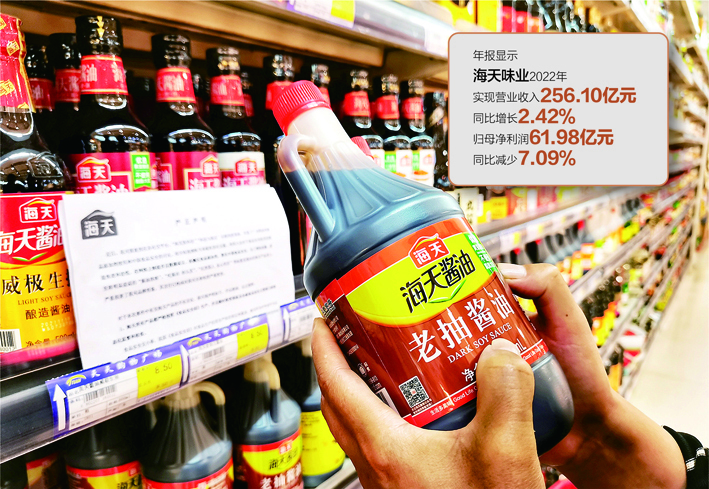 年报显示,海天味业2022年实现营业收入256.10亿元,同比增长2.42%;归母净利润为61.98亿元,同比减少7.09%,净利润为上市以来首次出现年度下降。