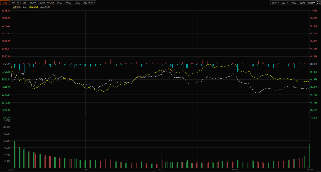 【市场走势】2023年6月20日星期二,今天市场继续向下延续调整走势,早盘指数低开之后贴边蹭下挫,银行保险等金融权重拖累指数下行,虽然一线权重调整,但是市场并不缺乏热点,游戏板块和军工板块逆势冲高,尤其船舶类更是集体上攻,带领指数向上回升,午盘之后赚钱效应有所扩散,工业母机和数据安全开始热起来,但是权重依然不给力,地产板块拖累指数走低,最终指数收出缩量小阴线。