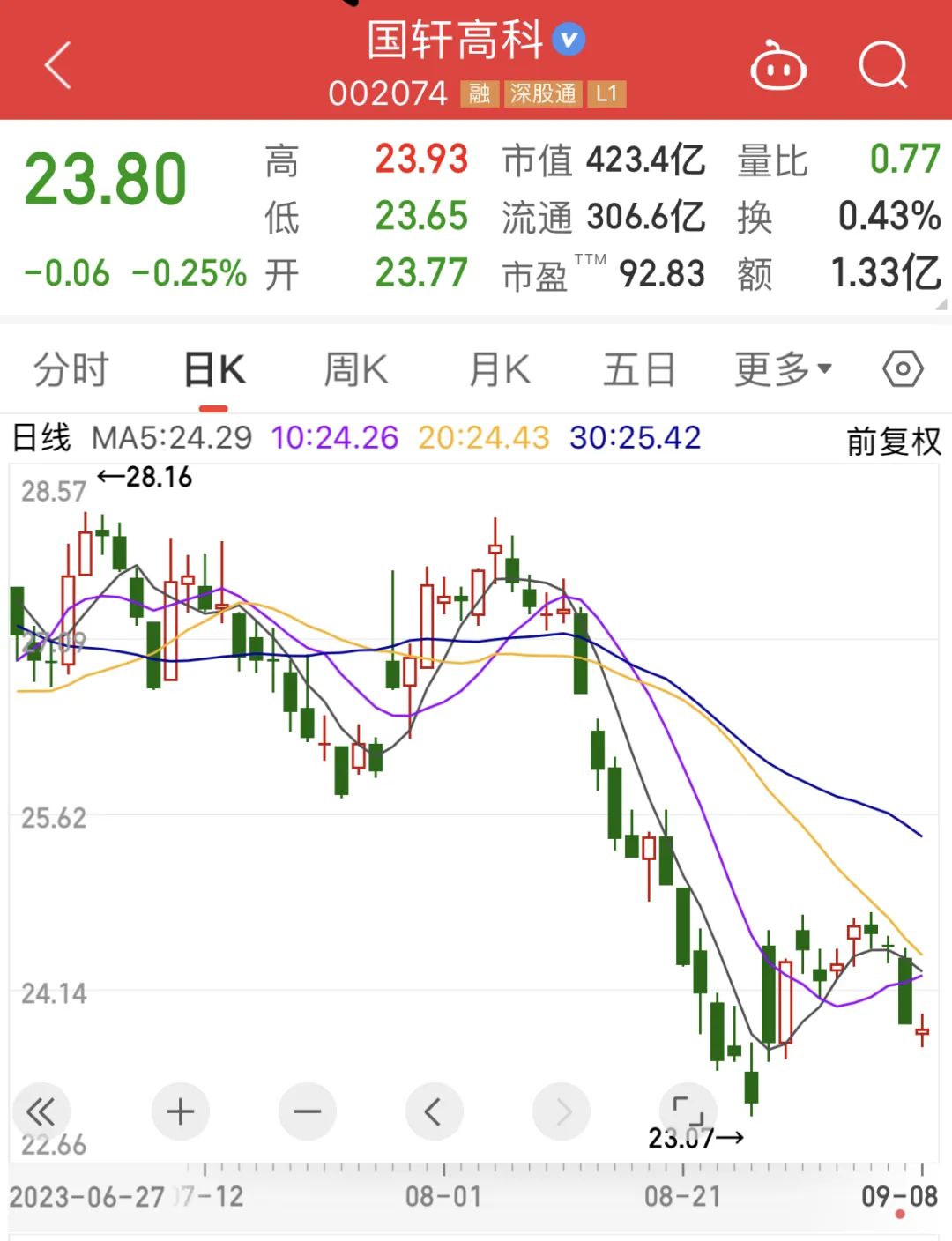 国轩高科最新股价为23.8元/股,总市值423.4亿元,该股股价自2022年7月以来整体呈现下行趋势,目前已累计跌去近50%的幅度。业绩方面来看,2023 年上半年,公司实现营业收入152.39亿元,同比增长76.42%。归母净利润2.09亿元,同比增长223.75%。