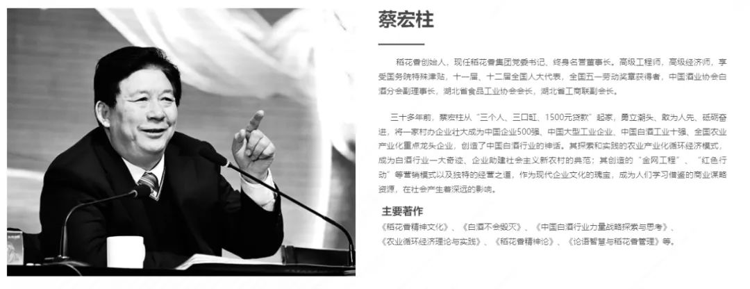 资料显示,蔡宏柱出生于1951年10月,是湖北宜昌知名企业家。他从零起家,一手创立“稻花香”酒业,打造出一家以白酒为主业,以物流、配套、文化旅游为辅,聚合“一主三辅”产业集群的大型企业集团。
