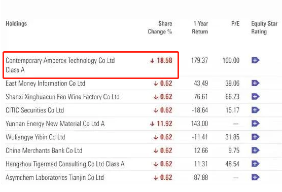 中国基金报报道,日前,海外规模最大的中国股票基金安联神州A股基金公布了最新持仓情况。10月,安联神州A股基金对前十大重仓股均进行了减持。其中对宁德时代减持幅度达18.58%。