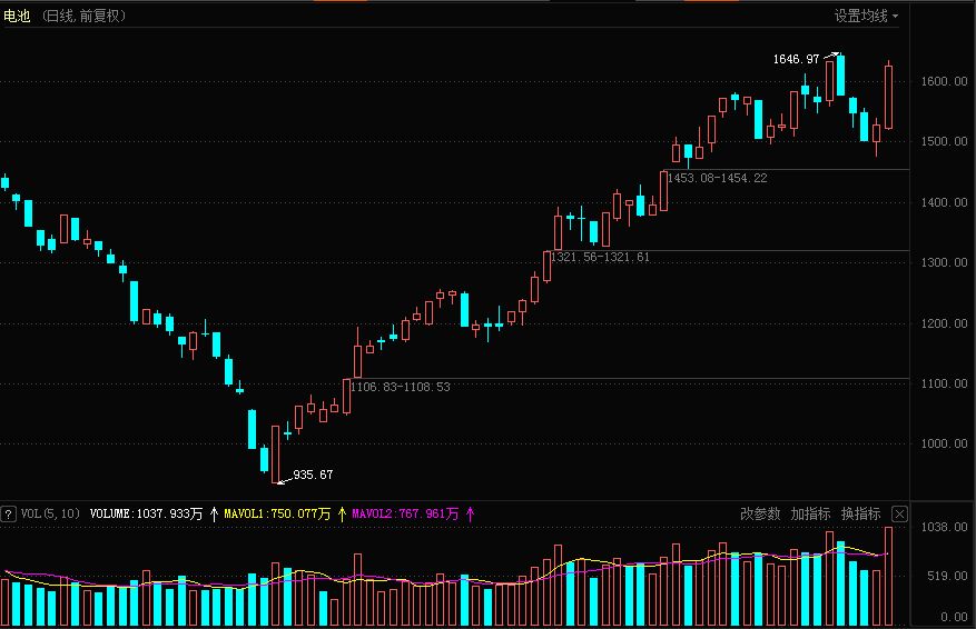热点板块来看,今天又是新能源,对于新能源要注意方向,昨天已经讲到了,而机构也是积极唱多新能源,包括几大券商开始谈论电池突围的开端!锂电池、麒麟电池、钒电池、钠电池剖析等,今天表现最强的也是电池这个方向,到底是哪个电池好现在还没有结论,但是这种热烈的讨论已经足够资金进行一波炒作了,所以短线资金是不会放过这种机会的,电池的龙头宁德和阳光电源(300274)都是拔出了中阳线,这一类电池炒作其实也是属于低位补涨,涨幅最大的都是低位品种,包括亿华通、南都电源(300068)等都是超跌次新股,这和前面汽车那一边行情是有点像的,资金是把新能源汽车这一个概念分成了两个阶段炒作,第一个阶段主要是炒作的汽车,当前是第二个阶段主要是炒作新能源,利好消息刺激+机构唱多,这个模式还是很相似的。