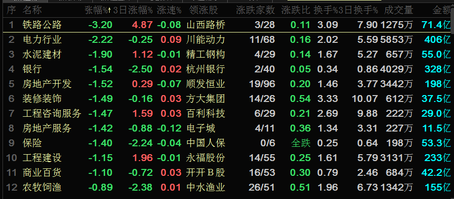 【板块分析】今日板块分化还是比较明显的,从创业板指数的中阳线和上证50指数的调整对比一下就可以感受到板块的分化,先来看一下跌幅榜,板块跌幅榜靠前的是铁路公路、电力行业、水泥建材、银行、地产等,都是主板的权重板块,铁路公路、电力等都是近期比较强势的板块短期出现技术性调整这是比较正常的现象,对于指数的影响也不大,现在关键是银行和地产,近期利空因素不断发酵、对于二级市场的股价也形成了影响,今天部分银行已经发布了相关公告,但是银行股表现还是比较糟糕的,平安、招行这都是银行板块中的大白马,从高位下跌至今跌幅达到了40%左右,而兴业、邮储这类银行也是平台破位,并且这些银行还没有出现止跌信号,短期利空因素需要进一步消化。