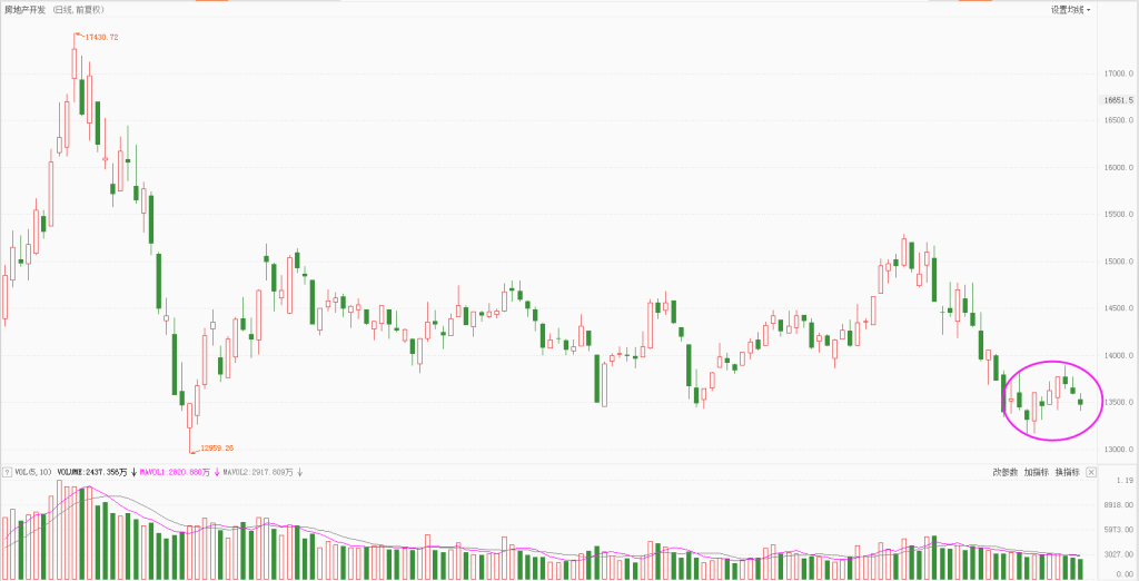 地产板块又迎来了利好政策,地产板块政策可谓是起起伏伏,而今年开始逐步释放利好政策,但是这个政策有一句话很重要就是特定的上市公司,并不是指所有的房企,所以下一个阶段重点还是在于地产板块优质品种、龙头公司会获得优势。技术走势来看,地产板块小幅反弹之后形成了三连阴,整体来看还是处于一个缩量筑底的走势,先要观察这个位置能否筑底成功。