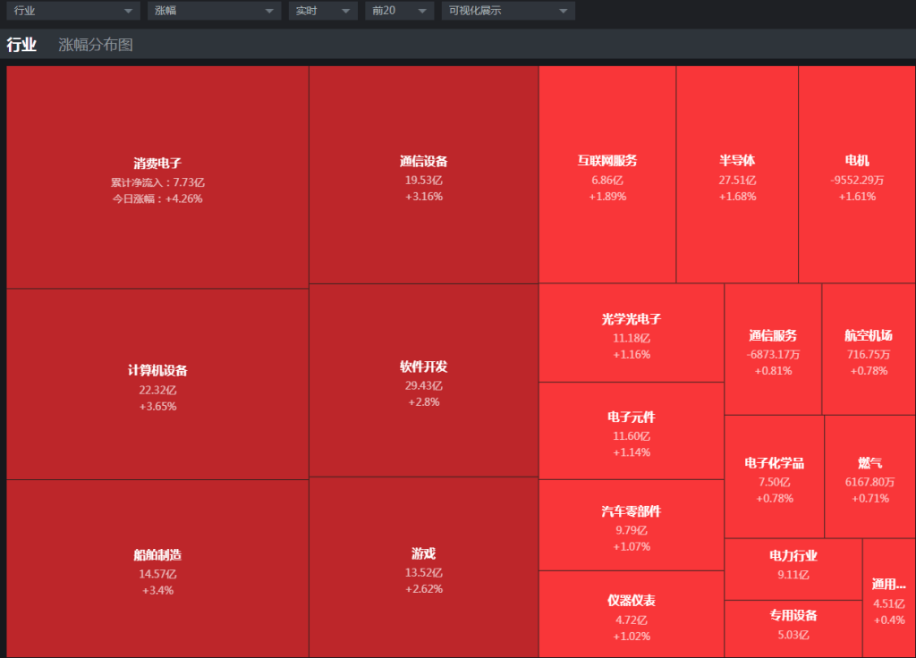 【热点板块】今日通过板块热力图来看,板块涨幅靠前的是消费电子、计算机设备、船舶制造、通信设备、软件开发、游戏、互联网服务、半导体等。高控盘四维分析来看,板块涨幅超过2%的有6个板块,今天指数走势虽然低迷、但是板块活跃度还是可以的,有多个板块涨幅超过2%,红盘的板块也是不少的。个股数据来看,沪深两市上涨家数是1977家,涨停54家,下跌家数是3086家,跌停是6家。板块和个股整体数据来看,向下主动杀跌力度并不强,跌停的只有6家,排除ST个股只有2家跌停,个股风险并不强,而数据来看个股下跌家数是不少的,是因为买盘信心不足导致的,近期信心就是处于复苏阶段,而本周只有三个交易日资金表现更为谨慎。板块来看,科技板块再次集体反弹,通信设备、游戏等这几个科技板块指数再创新高,软件开发板块也是逼近前期高点,科技调整之后这一波热度还在,科技板块这一轮反弹也和大家讲,虽然短线表现还是比较活跃的,但是需要注意的是这一波反弹和之前主升行情相比还是要弱很多的,同时也不好把握短期的上手点,不知道在哪上手,并且还要当心突破死、过顶洗的走势,突破死这个走势是很常见的,特别是在大盘整体走势偏弱的格局下很容易出现,所以短期科技板块短期反弹还是要注意的。另外重点说一下船舶板块,船舶板块两连阳反弹也是逼近了前期的高点,但是船舶板块和个股中期的位置是处于较低的位置,向上还是有反弹空间的,几只龙头票走势来看都是中期反复打底、近期开始出现放量走势,而消息面造船板块也是持续释放利好,下一个阶段船舶板块走势值得重点关注的。