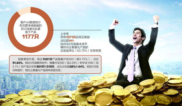 据记者对31家百亿级量化私募旗下产品的不完全统计,iFind截至7月7日的数据显示,在6月有完整净值数据的1238只产品中,有1049只产品实现正收益,占比近85%;超额表现方面,跑赢中证500、中证1000和沪深300的产品分别为1161只、957只和719只,占比分别为93.78%、77.3%和58.08%。