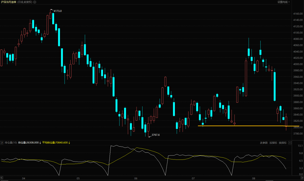 那么今天市场的反弹是增量资金进场吗,其实并不是,今天的反弹是空头资金平仓造成的。我们来看一下期指的走势:今天的低点已经跌破7月24日政策底的位置,空头的第一目标位达成。再看一下时间窗口:明天是本月的期指交割日,资金开始陆续平仓,目标位的到达加上交割窗口的临近让空方开始获利了结,所以今天的反弹不是自己长能耐了,而是敌人打的手累了。