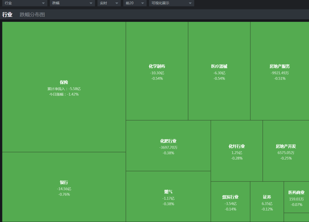 板块跌幅榜来看,保险、银行、化学制药、房地产服务等,板块迎来了普涨行情,而近期护盘主力军金融和地产板块却出现了调整的走势,这个也是很正常的,金融和地产这都是战略性板块,在关键防守和进攻的时候回去使用,而今天整体盘面走势还是可以的,也就不需要大金融出手了,可以迎来一个宝贵的休息时间,逼近这一段时间连续的护盘消耗也不小,包括从资金动向来看部分开始转向了科创板和创业板,给中小市值品种一些表现的机会。当然大金融板块这种调整也是很合理的,依然具备向上冲击的动能。