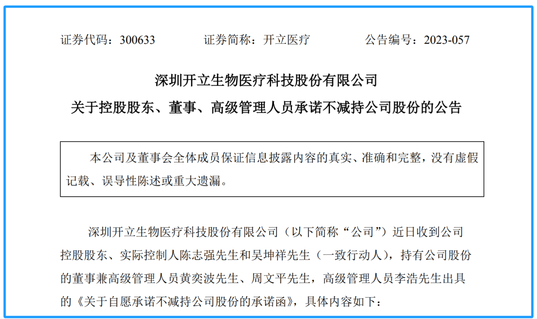 值得一提的是,10月26日晚间公告显示,基于对公司未来发展和持续经营的信心及价值判断,开立医疗控股股东及其一致行动人承诺12个月不减持公司股份,部分高管承诺6个月不减持公司股份。
