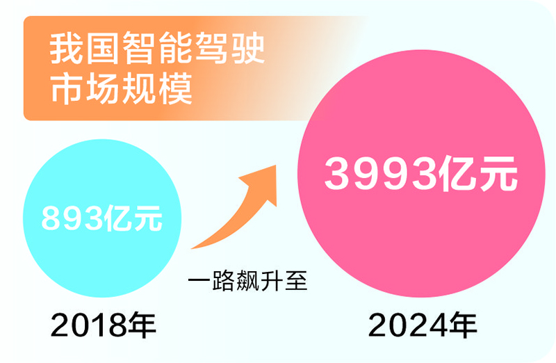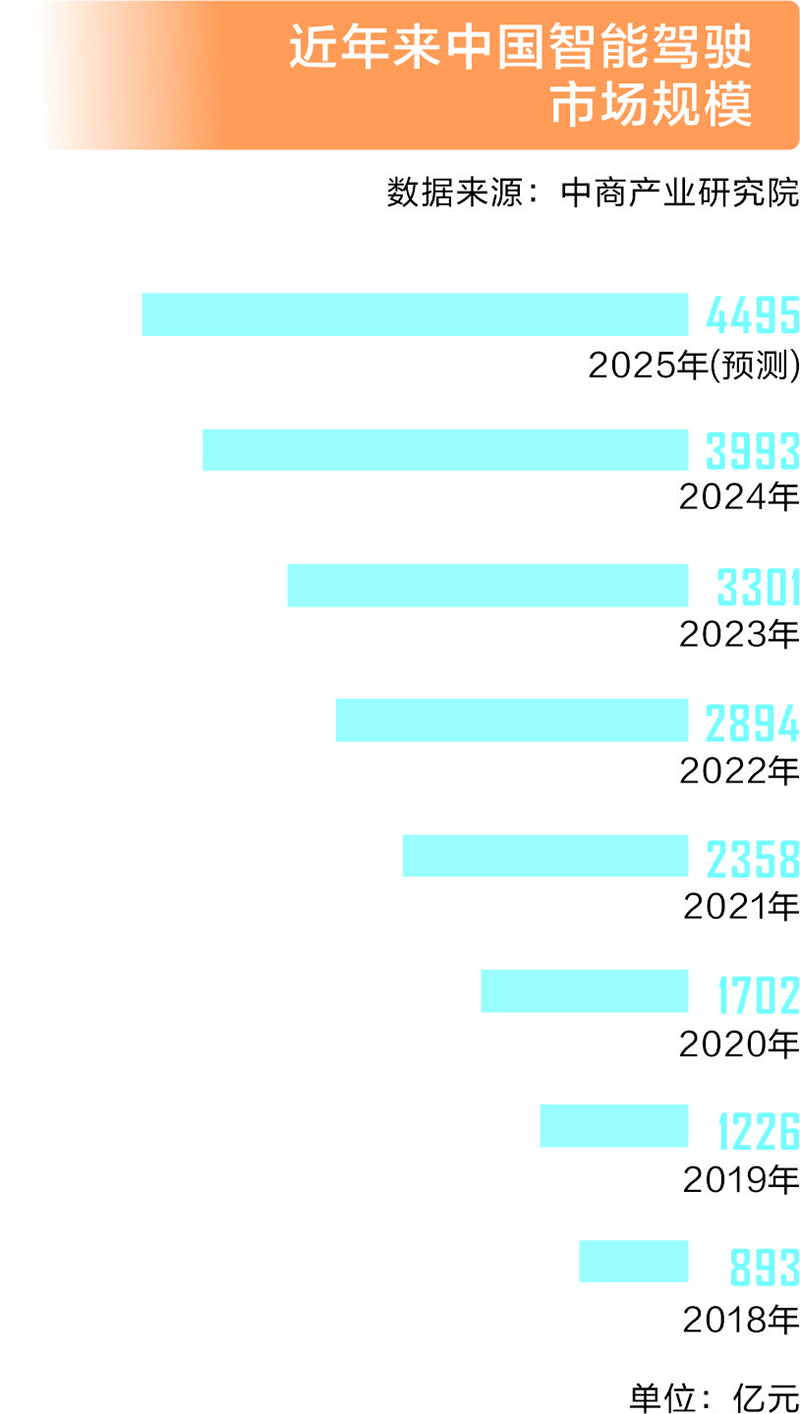 作为风口前端产业,智能驾驶市场前景广阔。根据中商产业研究院数据,我国智能驾驶市场规模由2018年的893亿元一路飙升至2024年的3993亿元,预计2025年将继续走高至4495亿元。