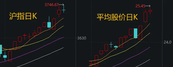 尽管过程跌宕起伏,但从日K来看,不论沪指还是全A平均股价,整体都是高位缩量十字星的形态。对此,该如何理解?