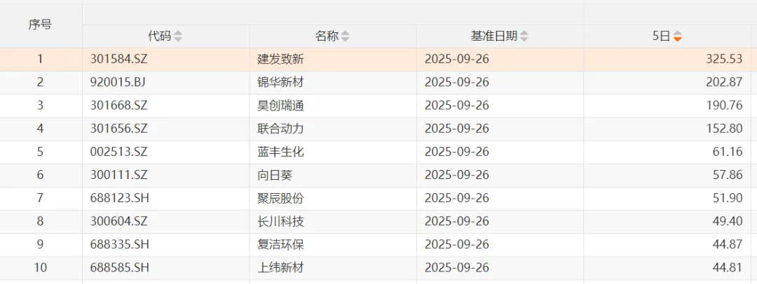 涨幅最大的前十只个股分别为:建发致新、锦华新材、昊创瑞通、联合动力、蓝丰生化(002513)、向日葵(300111)、 聚辰股份、长川科技(300604)、复洁环保和上纬新材。