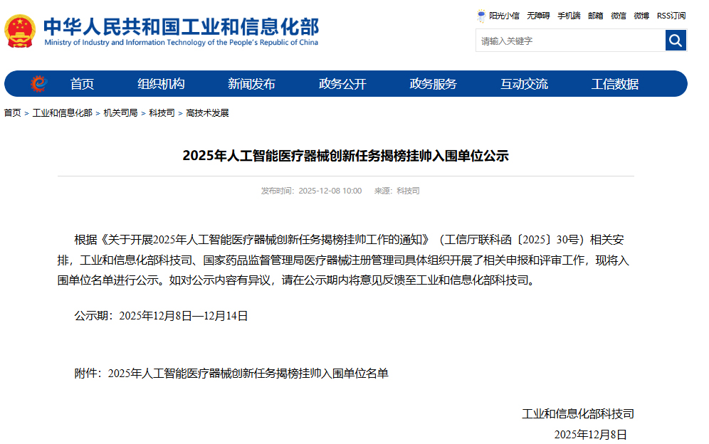 近日,2025 年人工智能医疗器械创新任务 “揭榜挂帅” 入围名单重磅公布,贝瑞基因(000710)凭借与同济大学附属妇产科医院联合申报的遗传病致病风险位点智能排序软件成功入选!