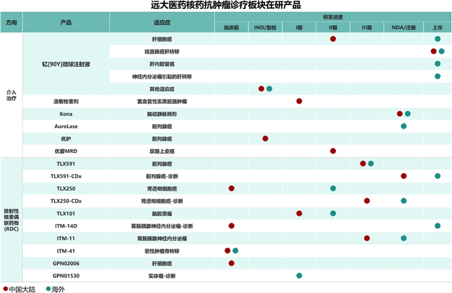 目前,远大医药已搭建起兼具全产业链优势以及全球化优势的核药体系。公司全球化的核药产业布局贯穿研发、生产及销售多个环节,拥有具有国际化一流水平的肿瘤介入研发平台和RDC药物研发平台,销售网络覆盖全球50多个国家和地区。公司全球首个核药全产业链闭环平台——成都核药研发及生产基地可实现100%自主生产,解决了核药“卡脖子”难题,且相关设施及生产质量达全球领先水平。