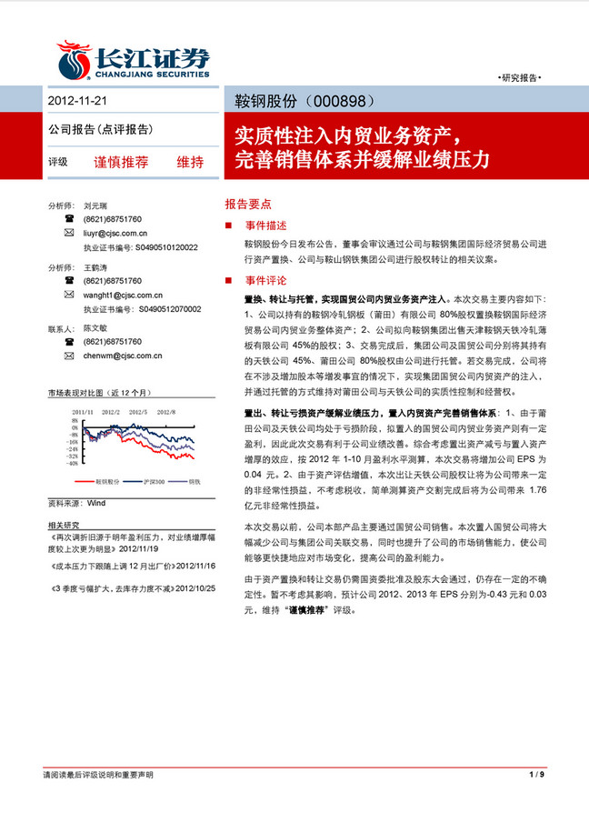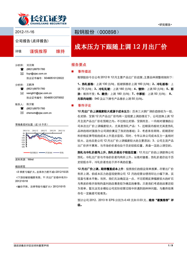 鞍钢股份:上调12月产品出厂价 谨慎推荐