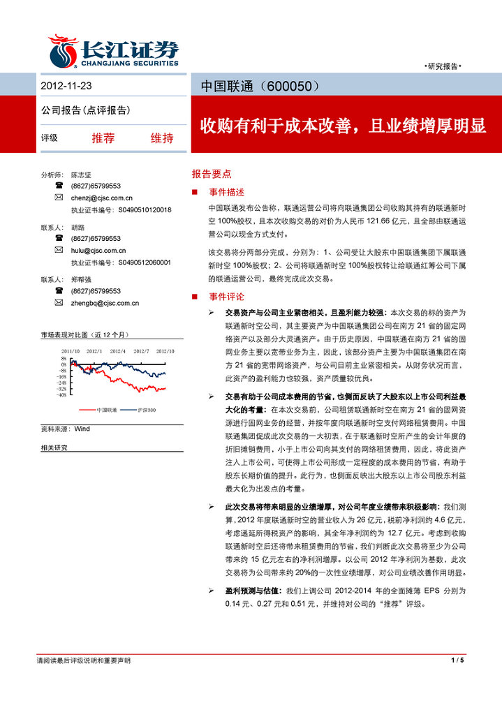 中国联通:收购新时空明显增厚业绩 推荐评级