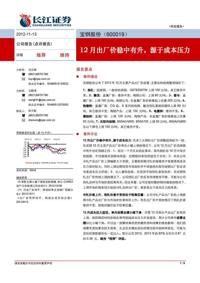 宝钢股份:出厂价稳中有升 维持推荐评级