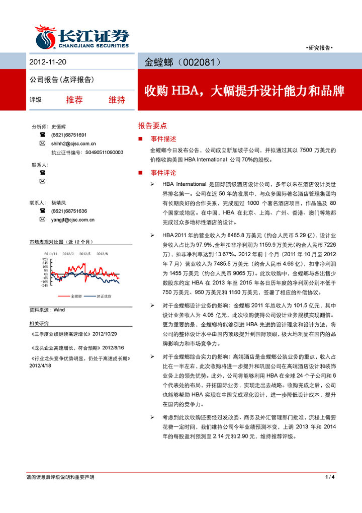 金螳螂:收购美国公司提升设计能力 推荐评级