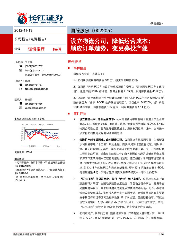 国统股份:设立物流公司降低运营成本 谨慎推荐