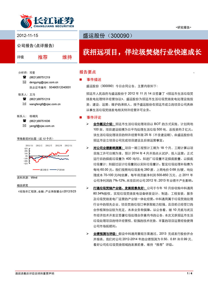 盛运股份:受益垃圾焚烧行业快速发展 推荐评级